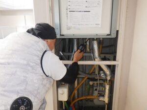 ガス漏れ確認をガス漏れ検知器できちんと確認します