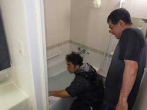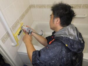 お客様と一緒に水漏れ、水漏れを確認中です。
