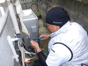 ガス漏れ確認をガス漏れ検知器できちんと確認します