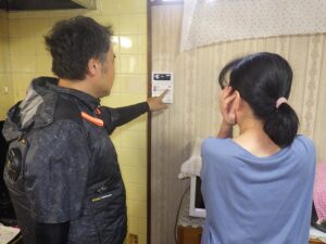 お客様と一緒に水漏れ、ガス漏れを確認中です。