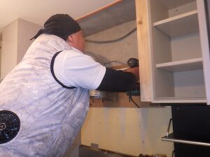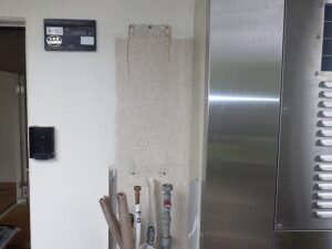 今回はレンジフードを90センチから75センチに変更するので下地を作ります