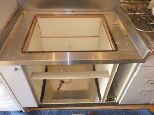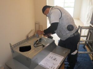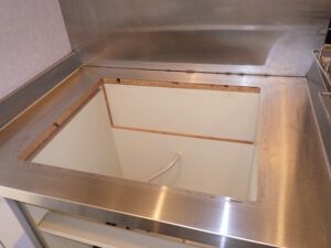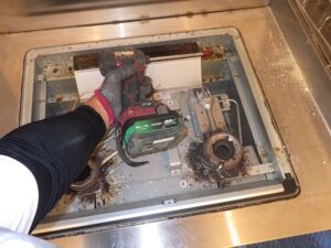 既存のコンロの天板を取り外してコンロの固定ビスを取り外します