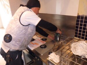 ガスコックを開けて、ガス漏れ検知器でガス漏れ確認をします