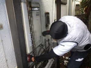 既存のガスター給湯器を壁より取り外します