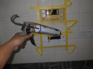取り付けて、防水のコーキングを打ちます
