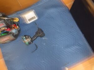 キッチンの床を養生します