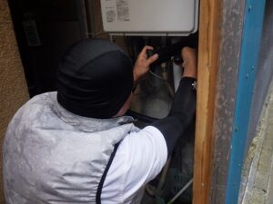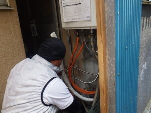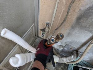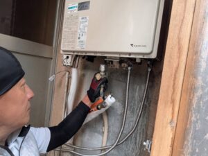 リンナイ給湯器にお湯、水・ガス・追い焚き配管を接続します