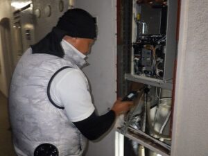 ガス漏れ確認をガス漏れ検知器できちんと確認します