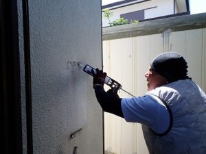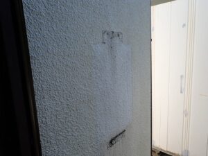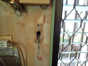 壁のリモコン配線が貫通しているところに防水のコーキングを打ちます