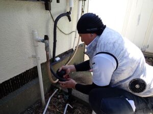 ガス漏れ確認をガス漏れ検知器できちんと確認します