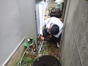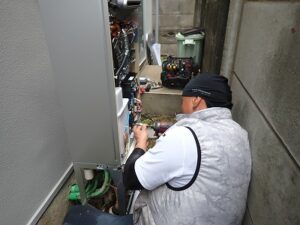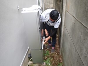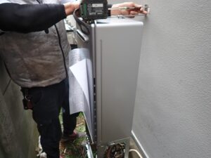 リンナイエコジョーズTES・熱源付き給湯器の全面パネルを取り付けます