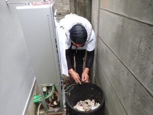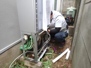 お湯、水、ガス・追い焚き、暖房配管・リモコン配線・電源を取り外します