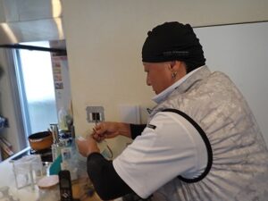 お客様と一緒に水漏れ、ガス漏れを確認中です。