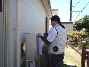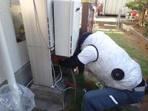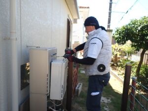 レンタル給湯器のお湯、水・ガス漏れ確認を