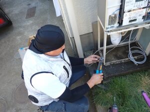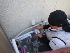 配管に保温材を取り付けてキャンパステープを取り付けます