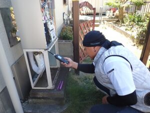 ガス漏れ確認をガス漏れ検知器できちんと確認します
