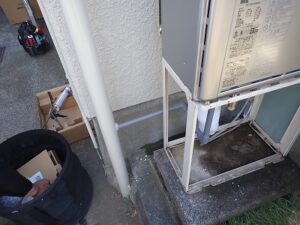 給湯器が入荷したので、レンタル給湯器を取り外します