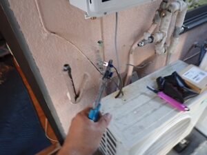 ガス漏れ確認をガス漏れ検知器できちんと確認します