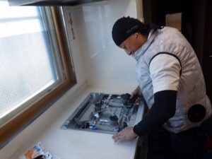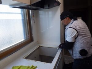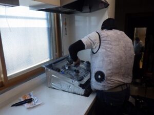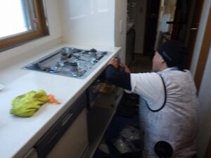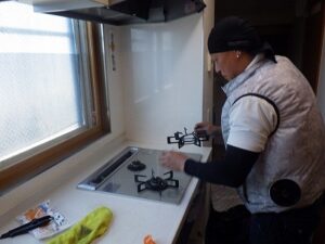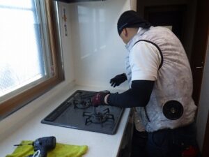 新しいノーリツガスコンロファミをキッチンに取り付けます
