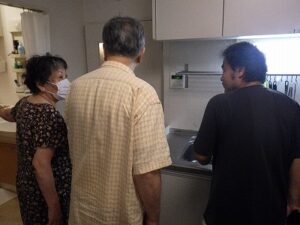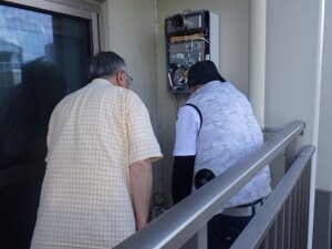 お客様と一緒に水漏れ、ガス漏れを確認中です。