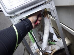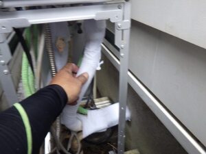カバーを取り外して、給湯器よりお湯、水・ガス・追い焚き・暖房配管