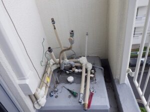 お湯、水、ガス・追い焚き配管を取り外します