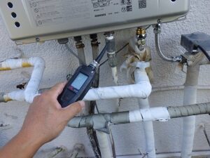 ガス漏れ確認をガス漏れ検知器できちんと確認します