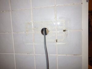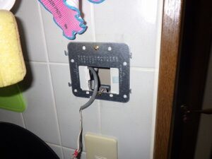 浴室リモコンの水平を確認しながら確壁に取り付けます