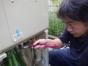 ガス漏れ確認をガス漏れ検知器できちんと確認します