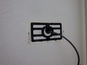 浴室リモコンの周りに防水のコーキングを打ちます