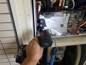 リンナイTES・熱源付給湯器の全面パネルを取り付けます
