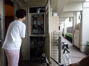 パイプスペースの扉を閉めて、