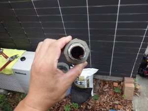 水の配管に鉄管部材が付いているので、取り外せるところまで取り外し準備をします