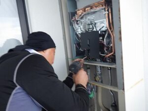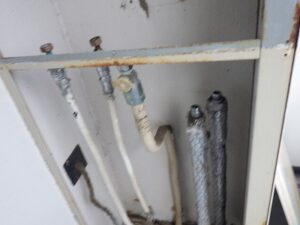 まずは給湯器の周りの鉄板を取り外します