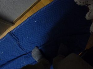 キッチンの床を養生します