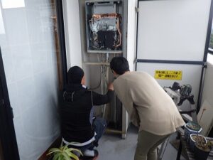既存のノーリツ給湯器を取り外します