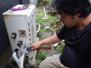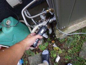 ガス漏れ確認をガス漏れ検知器できちんと確認します