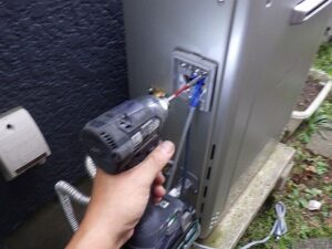 ノーリツエコジョーズ給湯器にお湯、水・ガス・追い焚き配管を接続します
