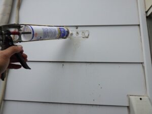 壁に防水のコーキングを打ちます