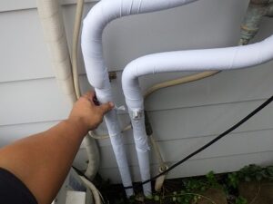 配管に保温材を取り付けます