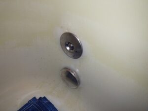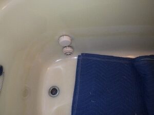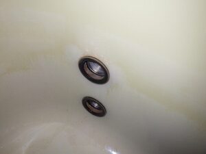 浴槽の2つ穴の循環金具を取り外します