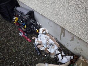 小雨が降っているので、先に中をやりながら順繰りと給湯器交換してきます。