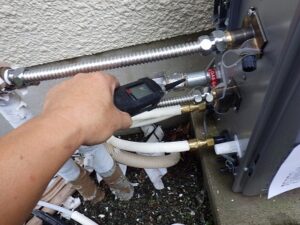 ガス漏れ確認をガス漏れ検知器できちんと確認します