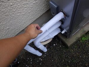 配管に保温材を取り付けます