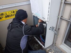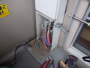 リンナイ給湯器にお湯、水・ガス・追い焚き配管を接続します