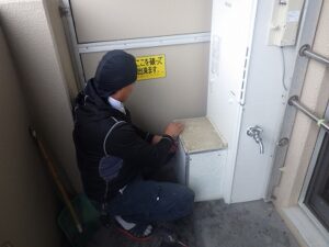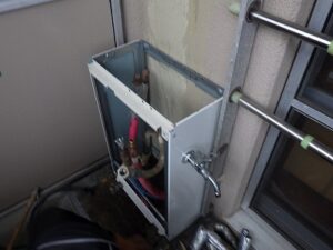 既存の松下給湯器本体を壁より取り外します