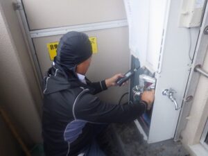 ガス漏れ確認をガス漏れ検知器できちんと確認します