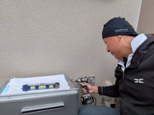 新しいリンナイエコジョーズ据え置き型給湯器を設置場所に置きます