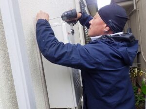 新しい暖房専用給湯器を壁に取り付けます