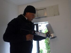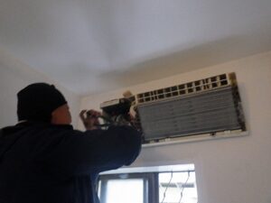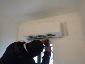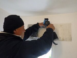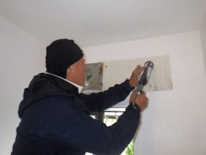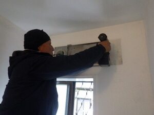 既存の壁掛け浴室乾燥暖房機を取り外します